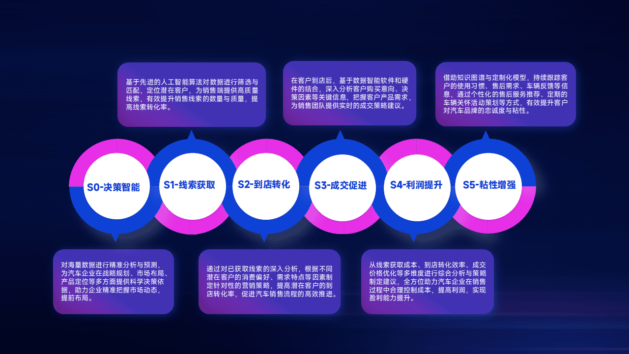通过拓宽潜在客户来源、、优化线索分配并提高到店转化率,,以增强销售效率。。。同时,,,,利用线索数据不断优化分析模型,,,有效提升转化率,,扩大营销影响力。。。。